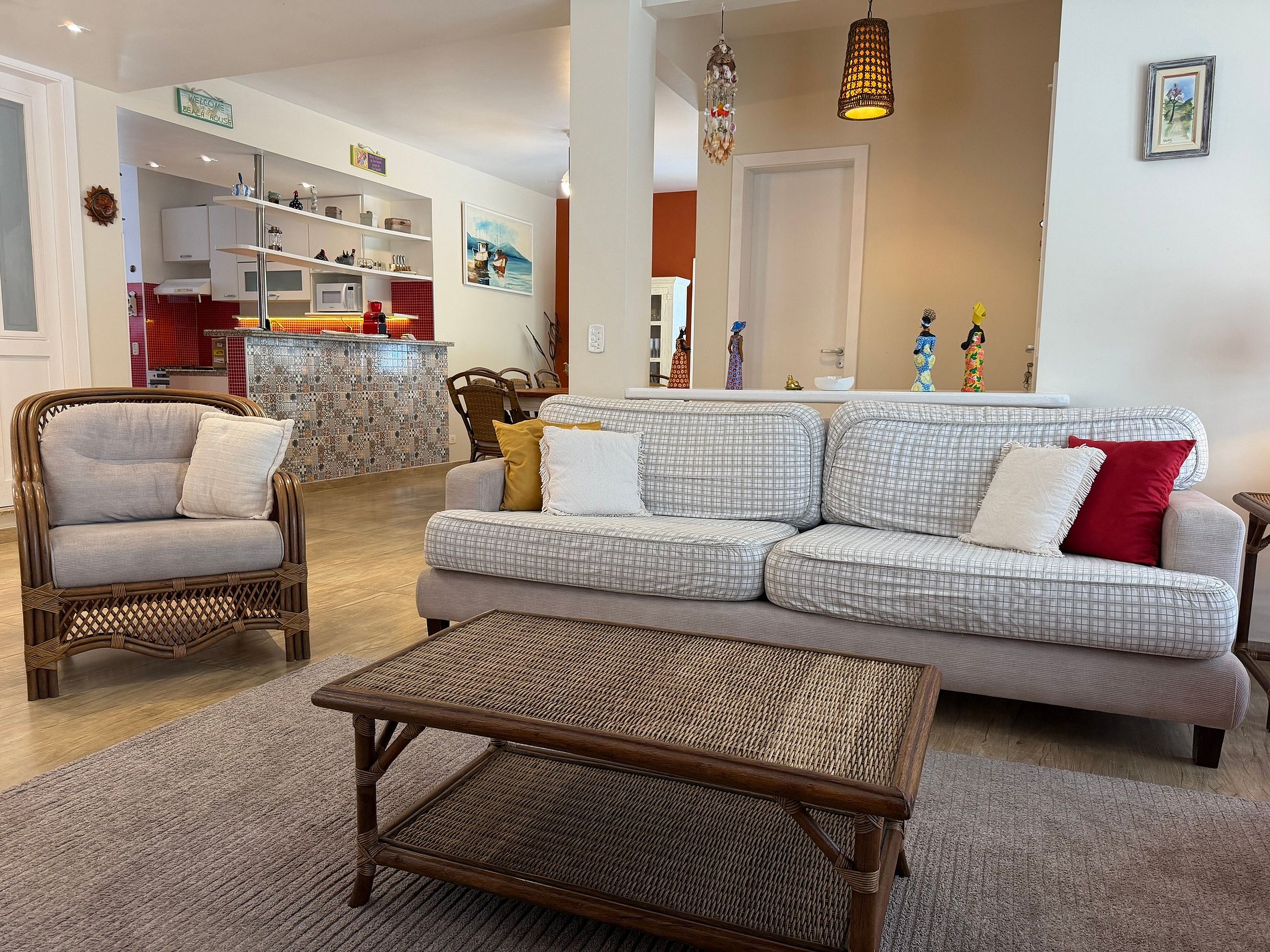 O imóvel conta com 4 quartos amplos, todos com ar-condicionado, além de sala climatizada. A cozinha é completa, rica em armários, eletrodomésticos e utensílios. Os ambientes são funcionais, bem distribuídos e acolhedores. Cada detalhe foi planejado para oferecer praticidade e uma sensação real de casa de praia bem cuidada.